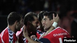 Президент Армении Серж Саргсян и президент Федерации футбола Армении Рубен Айрапетян (справа налево) на матче Амрения-Словакия. Ереван 8 октбяря 2010 г.