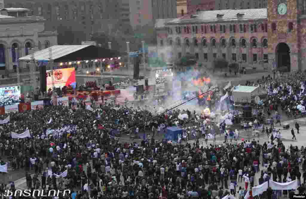 4 мая на площади Республики в Ереване, где был запланирован предвыборный митинг правящей Республиканской партии Армении, произошло чрезвычайное происшествие, в результате которого пострадало множество людей. Во время концерта, предшествовавшего митингу, в руках у принимавших участие в мероприятии подростков взорвались сотни наполненных газом воздушных шаров, вследствие чего множество людей получили ожоги. Их на машинах скорой помощи госпитализировали в различные больницы Еревана.