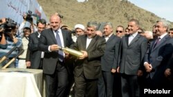 В ходе церемонии закладки фундамента министры энергетики Армении и Ирана подписали документ и заложили его в фундамент ГЭС.