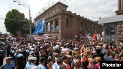 Сегодня несколько тысяч человек собрались на проспекте Маштоца, полностью заблокировав проспект, а также разместившись на левой стороне Крытого рынка.
