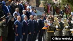 Раффи Ованнисян, который возглавляет партию «Наследие», годами призывающую официальный Ереван признать независимость Карабаха, как обычно в этот день первым посетил мемориальный комплекс в Степанакерте.