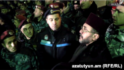 «Сейчас есть 13 задержанных. Я сейчас иду к прокурору и буду ходатайствовать о том, чтобы их отпустили», - возле здания прокуратуры заявил предводитель Ширакской епархий Армянской апостольской церкви епископ Микаел Aджапахян.