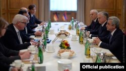 Президент Армении Серж Саргсян в рамках официального визита в Германию встретился с министром иностранных дел Германии, действующим председателем ОБСЕ Франк-Вальтер Штайнмайером.