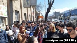 От здания колледжа демонстранты прошлись к Университету «Мхитар Гош», который находится в центре города, а затем планируют отправиться на Ванадзорскую площадь, где будут проходить акции протеста.