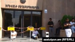 Группа демонстрантов сегодня с раннего утра в понедельник блокировала главный вход в мэрию Еревана, требуя отставки мэра Еревана Тарона Маркаряна.