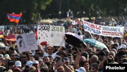 Сам Пашинян со своими многочисленными сторонниками пришел на центральную площадь Еревана – площадь Республики, шествием, которое стартовало за час до митинга с перекрестка улиц Эребуни и Арцаха.