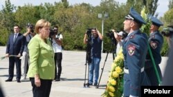 Сразу после прибытия в Армению из аэропорта «Звартноц» канцлер Германии Ангела Меркель отправилась в мемориальный комплекс «Цицернакаберд», где отдала дань уважения памяти жертв Геноцида армян в Османской Турции.