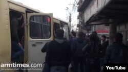 «Продолжая свои противоправные действия, указанные лица на улице Шарура в Ереване в очередной раз тем же способом остановили автобус, двое из них ударами ног открыли двери автобуса, ворвались в салон, применили насилие к сопровождавшему призывников инспектору А. Т. Наирийского отдела Котайского военкомата МО РА, ударили его по лицу, нанеся травму, и нецензурно выражались в его адрес, а другие лица вытащили водителя В. М. из салона, таща его за одежду», - говорится в сообщении.