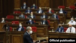 За заседанием правительства по закону последовало специальное заседание Национального собрания, на котором главный докладчик, премьер-министр Никол Пашинян, охарактеризовал ситуацию в стране как кризисную, отметив, что преодолеть ее можно только путем изменения общественного поведения. Пашинян озвучил прогноз о том, что эпидемия будет продолжаться не менее 1,5 лет, отметив, что в мире существуют и еще более пессимистичные прогнозы. «Если эти правила не будут широко соблюдаться, преодоление эпидемии станет невозможным», - сказал он.