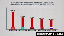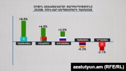 За первые девять месяцев прошлого года, по сравнению с январем-сентябрем 2020 года, самый высокий экономический рост был зарегистрирован в Армении и России - 4,6%. Затем идет Казахстан - 3,5%. В Беларуси рост составил 2,7%, а в Кыргызстане - всего 0,1%.