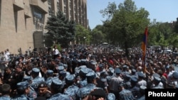 Сторонники оппозиции сегодня провели акцию протеста у 3-го корпуса правительства в центре Еревана, где полиция сосредоточила большие силы. В течение дня дважды произошли столкновения между полицейскими и протестующими. Полицейские не позволили оппозиционным депутатам войти в здание правительства и, применив силу, задержали демонстрантов. Во время столкновений нескольким гражданам стало плохо.