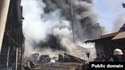Пресс-секретарь МЧС сообщил Радио Азатутюн, что горит трехэтажное здание местных складов, есть частичное обрушение. По сообщенным им данным, один человек погиб, 20 - ранены.