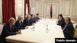 Делегация во главе с президентом Нагорного Карабаха Араиком Арутюняном, находящаяся в Армении на протяжении уже нескольких дней, сегодня встретилась с председателем Национального собрания Армении Аленом Симоняном. Хотя стороны остались довольны результатами встречи, в ходе брифинга они высказали противоположные мнения относительно дальнейшего переговорного процесса.