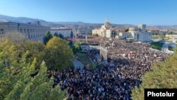 Параллельно с внеочередным заседанием парламента Карабаха на площади Возрождения в Степанакерте прошел многолюдный митинг с участием действующего и бывших президентов Карабаха.
