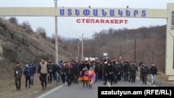 Карабахцы направляются в аэропорт Степанакерта, чтобы потребовать встречи с командующим миротворческими силами