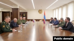 Министр на своей странице в Facebook сообщает, что на встрече присутствовали посол России в Армении Сергей Копыркин, атташе по оборонным вопросам посольства Игорь Щербаков и экс-командующий миротворческим контингентом РФ, генерал-майор Андрей Волков.