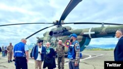 «Глава миссии наблюдателей Европейского союза в Армении Маркус Риттер и посол ЕС в Армении Андреа Викторин на аэродроме Сисиана встретили председателя подкомитета Европарламента по вопросам безопасности и обороны Натали Луазо и делегацию подкомитета, чтобы присоединиться к команде гражданской миссии ЕС для запланированного патрулирования к Лачинскому коридору», - сообщила утром европейская наблюдательная миссия на своей странице в Твиттере.