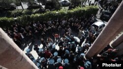Группа карабахцев сегодня с раннего утра собралась у здания представительства Нагорного Карабаха. Протестующие выдвигают различные требования. Прежде всего они требуют, чтобы было изучено имущество высокопоставленных чиновников и военных Нагорного Карабаха, и если оно незаконное, то должно быть возвращено народу Нагорного Карабаха. Одно из требований к президенту НК Самвелу Шахраманяну - дать ответ по вопросу указа о роспуске государственной системы Нагорного Карабаха.