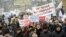 Сотрудники компании «Южно-Кавказская железная дорога» сегодня вышли на забастовку с лозунгами «Верните наши деньги», «Мы против обязательной накопительной пенсионной системы».