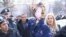 Группа людей заявляла, что город Эчмиадзин проголосовал в пользу «да» и они любят президента Сержа Саргсяна.